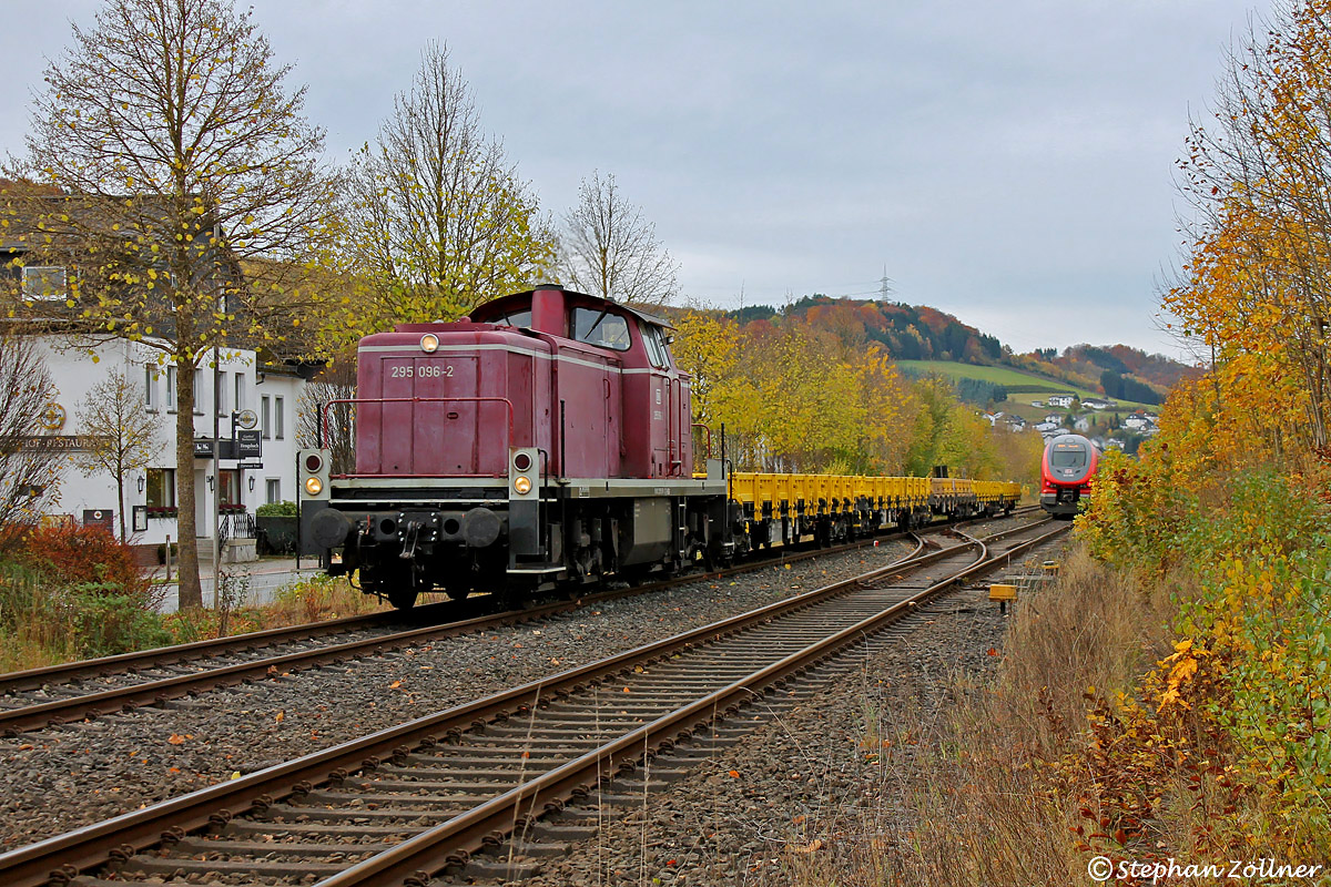 Unverhofft kommt oft, zumindest im Oktober 2025 im Oberen Ruhrtal. Konnten im Laufe des Monats schon etliche besondere Zugleistungen hier im Bild festgehalten werden, kam am Monatsletzten sogar noch etwas Altrotes vor die Linse. Denkbar knapp zog Murphy an der Bestwiger Westeinfahrt den kürzeren, wie die Aufnahme der geradeso freigefahrenen Pfalzbahn 295 096 mit ihrem Bauzug zeigt.