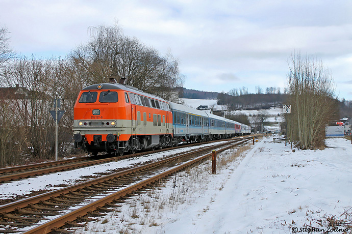 Nach Absetzen der Partygäste in Brilon Wald wurde der MSM-Sonderzug zum Willinger Skispringen am Samstagmittag des 31. Januar 2026 zur Zwischenabstellung und Tanken der Lok nach Bestwig abgefahren. Aufnahme bei mittlerweile zugezogenem Himmel in der Durchfahrt Nuttlar.