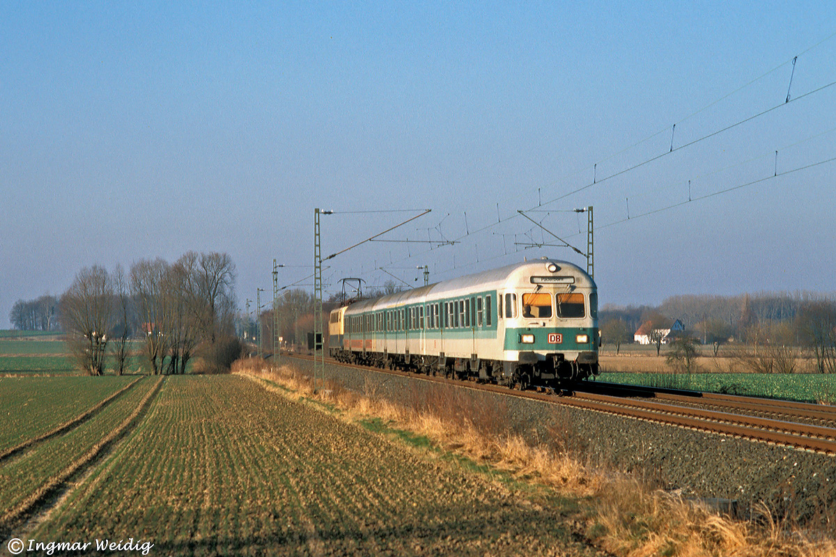 Ende der neunziger Jahre wurde der Nahverkehr in weiten Teilen Westfalens noch mit Wendezügen und der Baureihe 141 abgewickelt. Bei Süddinker fotografierte Ingmar Weidig an Heiligabend 1996 den von 141 306 geschobenen SE 7292 mit dem Laufweg Münster – Paderborn.
