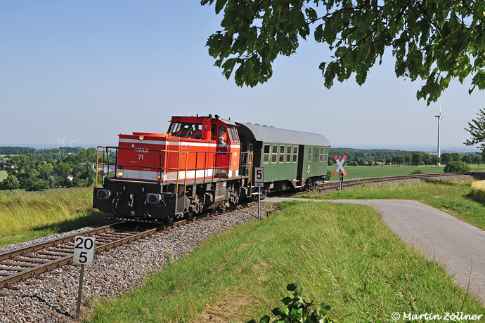 Fanden früher alle 2 Jahre Inspektionsfahrten des Landesbevollmächtigen für den Bahnverkehr auf den privaten Strecken statt, so ist nach der Bahnreform nun das Eisenbahnbundesamt zuständig. Für Landesbahnen deligiert dies seine Aufgaben jedoch auf die jeweiligen Landeseisenbahnaufsichten (LEA). Am 12. Juni 2025 konnte eine Fahrt am Brechpunkt auf dem Haarstrang abgelichtet werden. Früher mit dem angemieteten 795 122 der MEH kam heuer WLE 71 mit dem B4yg der MEH zum Einsatz.
