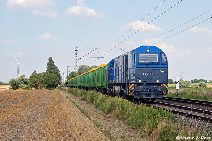 Mit einem langen Rohholzzug von Holzminden zum eigenen Bahnhof Dortmund-Obereving durchfährt Leihlok 273 009 der Dortmunder Eisenbahn am Abend des 17. Juli 2018 die Soester Börde. Entlang des Hellwegs ist bei Unna-Steinen sogleich die Fotowolke vom Dienst zur Stelle, um dem Fotografen ein wenig die Laune zu verderben.