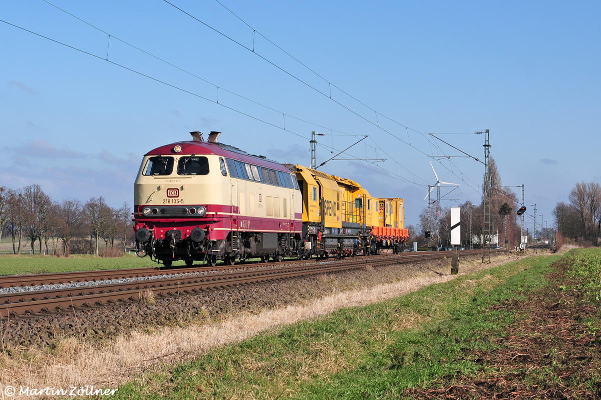 Am 16. Februar 2025 wurde morgens in einschlägigen Internetforen die Überführung einer Schleifmaschine von Göttingen nach Neuss vorgemeldet. Der Laufweg sollte über Paderborn führen. Dank einer kurzfristigen Zusatzinfo, das die oft von der Nesa-218 105 beförderte Speno RR 16 MS-8 (99 85 9127 100-7) ab Soest auf Werl ⁄ Unna und nicht auf Welver ⁄ Abzw Gallberg abbiegt, konnte erfreut an der richtigen Strecke stehend bei Steinen ein Spätnachmittagssonnenbild angefertigt werden.