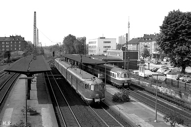 Einmal am Tag standen im Sommer 1982 die Chancen gut, von der Hörder Bahnhofsbrücke aus gleich zwei dieser für die heimische Gegend (noch so) typischen Charakterköpfe der Baureihe 430 nebeneinander zu erwischen und bildlich festzuhalten. Vor 41 Jahren lief der Verkehr auf der Strecke Dortmund – Soest weder im Takt, noch bestritten ihn die Hammer ET 30 allein. |