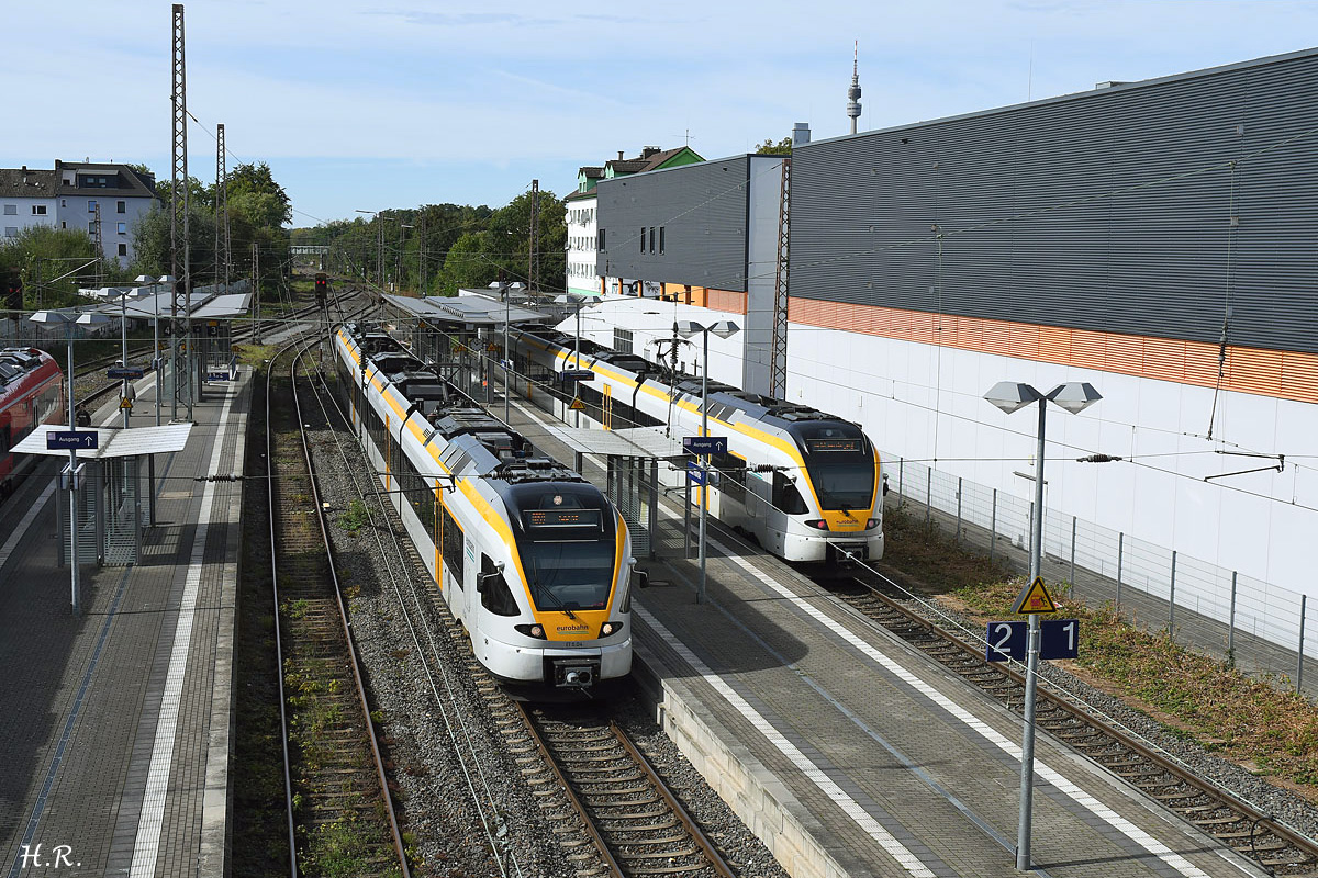 Viel Zeit zu investieren und unter heutigen Verhältnissen auf ein passendes Treffen zweier aktueller ETs zu spekulieren, dazu fehlte es H.R. bislang an der nötigen Einsatzbereitschaft. Dem abgeholfen haben im Herbst 2023 stattfindende Gleisbauarbeiten, die Hörde vorübergehend betrieblich zum Kopfbahnhof machten und das entsprechende Nebeneinander so völlig unvermeidbar war. |