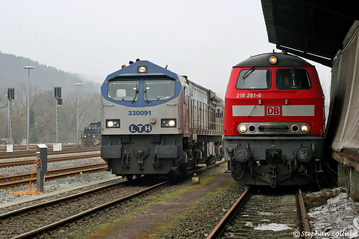 Großdieselloktreffen am nebeligen 21. Februar 2008 im Bestwiger Gbf. Während sich in der Mitte OHE 3300 91 nach Ergänzen der Betriebsstoffe von der Tankanlage aus auf den Weg nach Arnsberg macht, wartet 218 261 rechts auf das Freiwerden der Zapfsäule. Hinten links mogelt sich soeben noch MRCE 100 1013 ins Bild, die gerade mit dem Eggerzug aus Brilon zurückgekehrt ist.