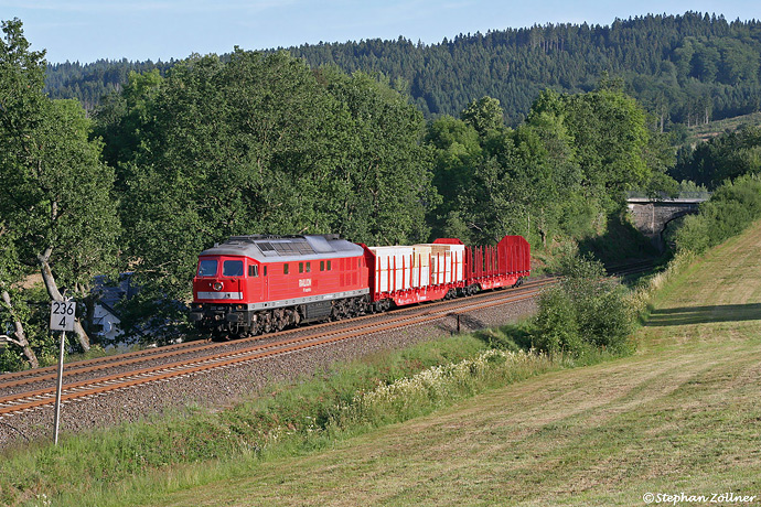Am Morgen des 21. Juli 2010 wurde das sonnige Wetter wieder genutzt um den Umleitergüterzug 61505 zu fotografieren. An der Olsberger Roten Brücke hatte 232 469 diesmal einen vom Vortag wegen Überlast zurückgebliebenen Schnittholzwagen vom Eggerwerk sowie einmal Leergut aus Neheim-Hüsten am Haken.