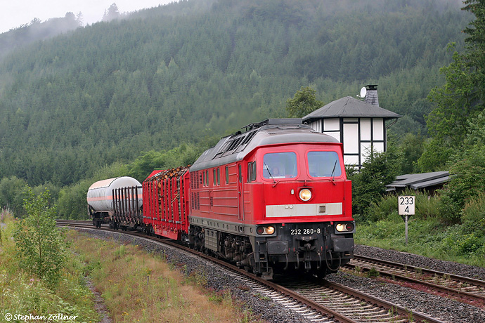 Die morgendliche Umleiterleistung im Sommer 2010 Richtung Warburg verkehrte in der Regel recht pünktlich um 07.40 Uhr ab Bestwig. So auch am 30. Juli, als in Olsberg kurzzeitig etwas der Himmel aufriss, von Sonne aber keine Spur zu sehen war.