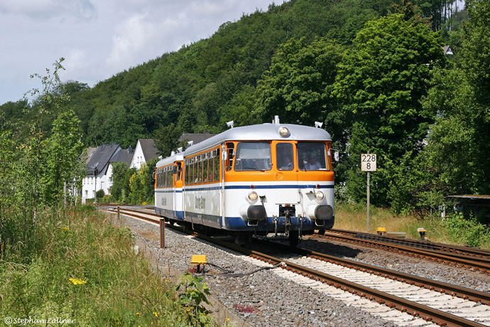 Äußerst seltenen Besuch bekam das Sauerland am 30. Juni 2012. Eine Charterfahrt führte die ehemalige SWEG-MAN-Garnitur der in Bielefeld ansässigen Osningbahn von Bönen ins Upland nach Willingen. Noch kurz bevor die nächste Wolkenfront die Fotostelle am Abzweig Nuttlar erreicht, rollt dort DPE 91662 gen Brilon Wald vorbei.