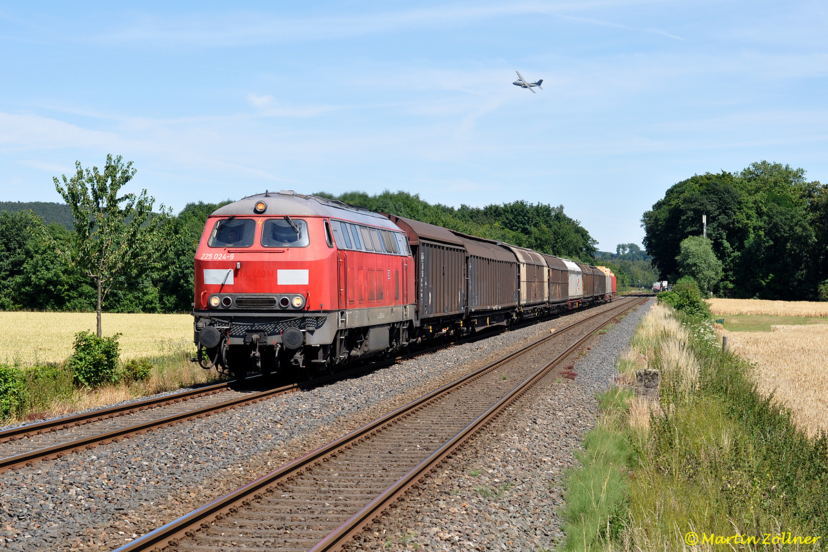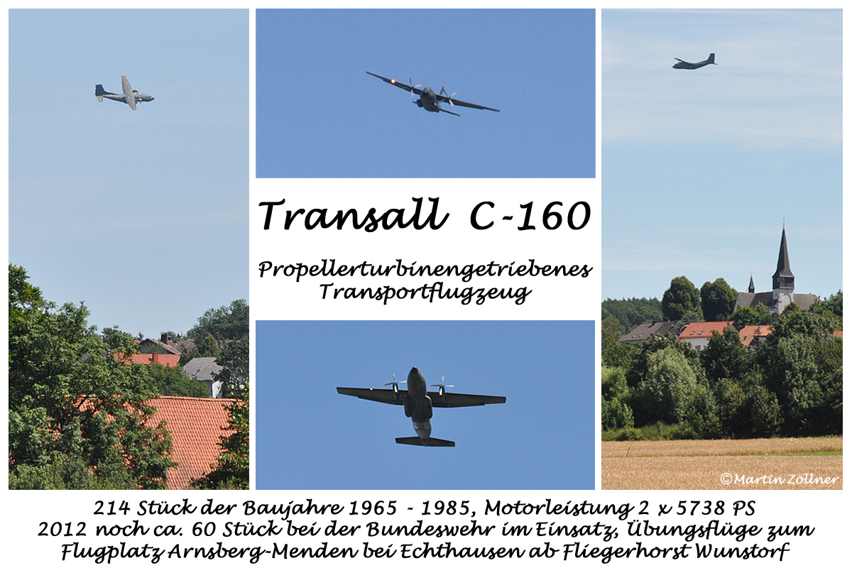 Am 23. Juli 2012 treffen bei Echthausen gleich zwei Exemplare der Gattung 160 zusammen: Während unten 225 024 als Vertreterin der Type V 160 den nachmittäglichen Eggerzug nach Schwerte am Zughaken hat, kreist darüber eine Transall vom Typ C 160 des Bundeswehr-Fliegerhorstes Wunstorf, die zu Lande- und Startübungen auf dem Flughafen Arnsberg-Menden seit 2011 nach jahrelanger Abstinenz nun wieder öfters hier anzutreffen ist.