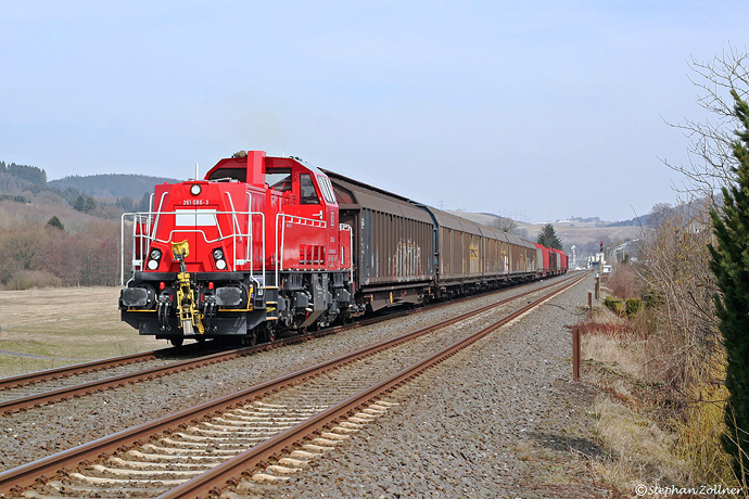 Am Montag, den 08. April 2013 und damit in der zweiten Einsatzwoche der Voith Gravita im Sauerland bespannte eine Maschine der "kleineren" Ausführung 10 BB (1000 KW Motorleistung) den Eggerzug. Gegen viertel vor Drei zog die Oberhausener 086 mit der Rückleistung nach Schwerte in Velmede am Fotografen vorbei Ruhrtal abwärts.