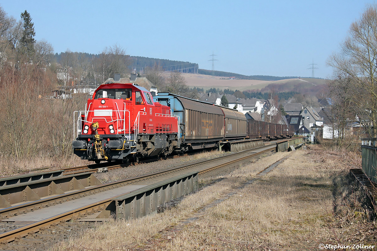 Die wie üblich anderthalb Stunden vor Plan verkehrende Rückleistung von der Firma Egger in Brilon nach Schwerte konnte am wolkenlosen Nachmittag des 17. März 2016 auf dem Nachhauseweg an der Bestwiger Alfert bildlich geklärt werden. 265 028 stellte die Traktion sicher.