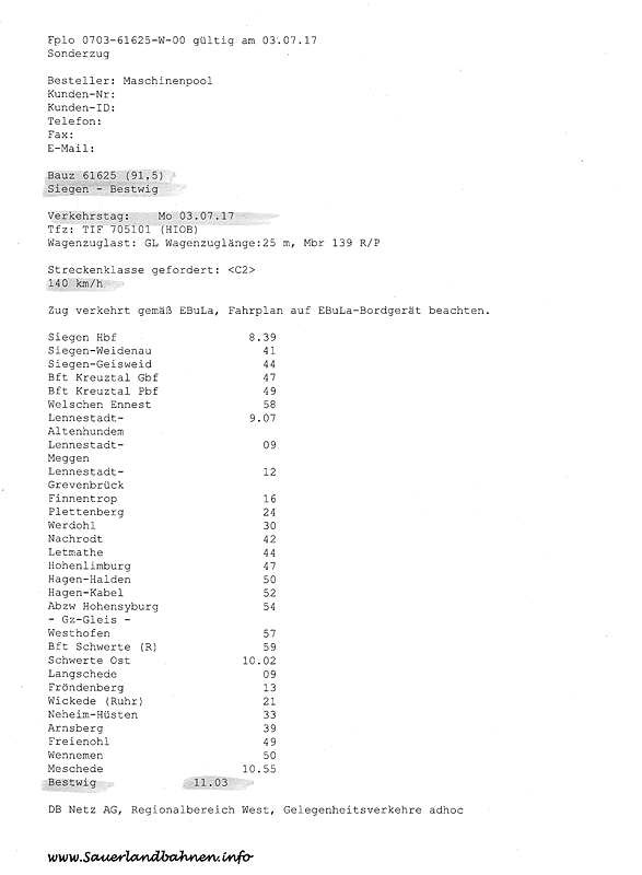 In der 27. und 28. Kalenderwoche 2017 fanden im Oberen Ruhrtal wieder die turnusmäßigen Tunneluntersuchungen statt. Eingesetzt wurde diesmal einer der beiden neuen HIOB´s namens 705 101, welcher auf dieser Aufnahme gerade gegen Mittag des 03. Juli seinen Arbeitsstützpunkt Bestwig erreicht.