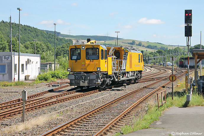 Gegen Mittag des 03. Juli 2017 hat das Tunnelinspektionsfahrzeug 705 101 an der Bestwiger Tankanlage seine Vorräte ergänzt und setzt nun bis zum Beginn des Nachteinsatzes zur Zwischenabstellung in den Gbf um.