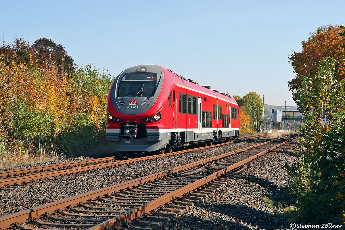 Die Tf der Dreieichbahn wurden im Herbst 2018 wegen der vor Ort befindlichen Pesa-Techniker (Inbetriebnahme 632 für das Sauerlandnetz) mit eigenem Fahrzeug in Dortmund ausgebildet. Donnerstags war dabei immer Fahrtag mit zwei Runden ins Sauerland und zurück, wie am 11. Oktober, als 632 032 die erste Rückfahrt des Tages soeben in Bestwig begonnen hat.