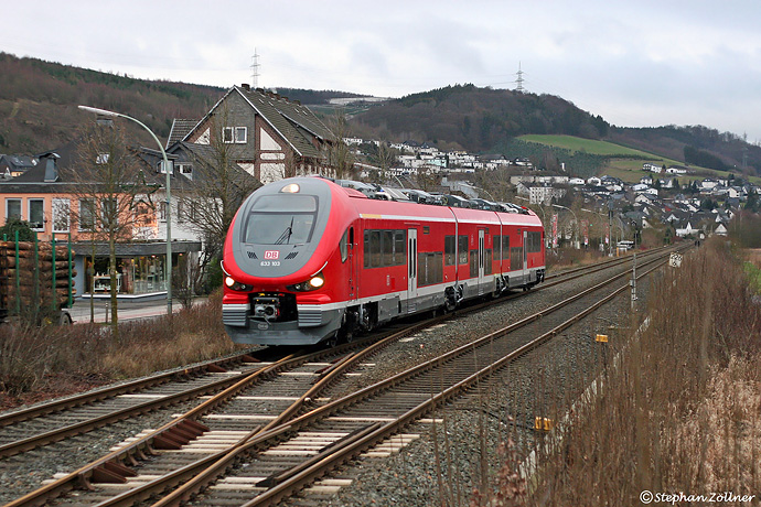 Die erste Fahrt eines Pesa-Link III der Baureihe 633 im Oberen Ruhrtal fand am 09. Januar 2019 statt. 633 103 kam als Ausbildungsfahrt von Dortmund Bbf nach Bestwig und wurde zur Personalschulung dort hinterstellt. Aufnahme um kurz nach 15.00 Uhr an der Einfahrt zum Zielbahnhof.