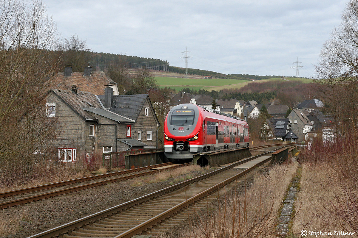 Seit Anfang März 2019 kommen nun auch die neuen Pesa Link III so langsam ans Laufen. Am Nachmittag des 12.03. konnte 633 107 als RE 10764 nach Dortmund auf der Ruhrbrücke an der Bestwiger Alfert beobachtet werden.