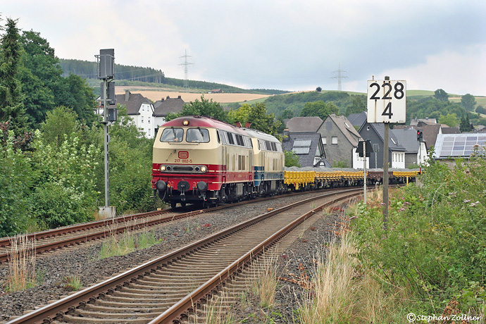 Auch am 02. August 2019 kein Sonnenbild vom Aushubzug nach Stolberg. Immerhin war diesmal 217 002 führende Lok und jemand hatte in den Tagen zuvor die Innenkurve am BÜ Alfert etwas freigeschnitten. So konnte dann von der Schranke aus wenigstens ein Bild mit sichbarem Zug angefertigt werden.