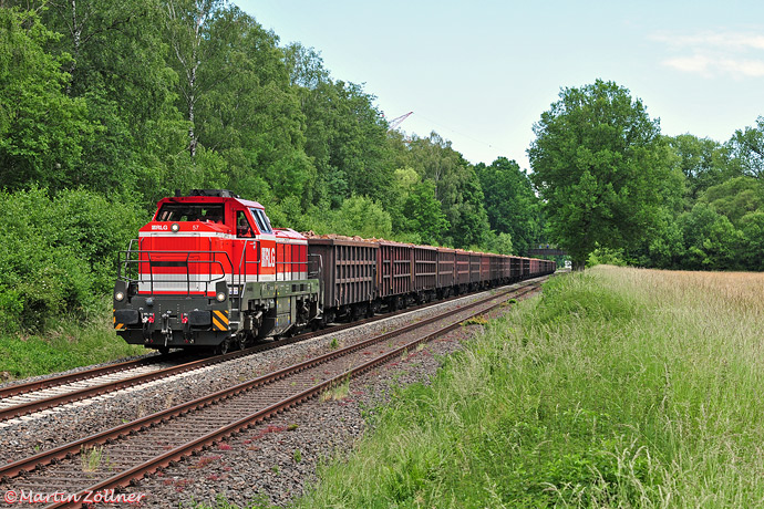 Vom 12. auf den 13. Juni 2020 fand die zweite Käferholz-Ganzzugverladung in Sundern für ein Sägewerk in Rumänien statt. Der 450-Meter-Zug mit den 33 Eaos-Wagen wurde am 13. gegen Mittag von Sundern bis zum Schwerter Güterbahnhof gebracht, wo die von HGL Bebra angemietete 185 577 am frühen Abend den Zug wieder via Soest – Altenbeken Richtung Süden übernahm. Bei Geisecke passiert der Stammholztransport das Naturschutzgebiet Bahnwald in Geisecke.
