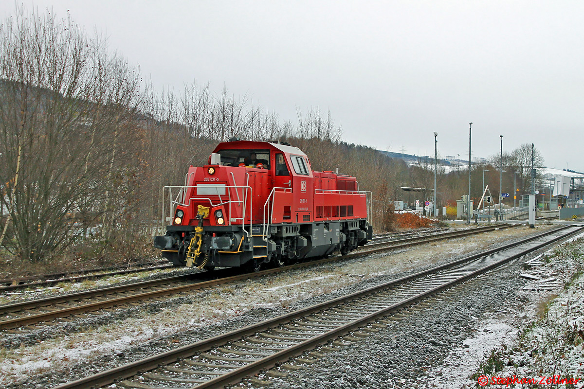 Seit der Verlegung der Eggerbedienung in die Abendstunden macht sich die seit Mitte 2013 hier im Einsatz befindliche BR 265 bei Tageslicht sehr rar im oberen Sauerland. In letzter Zeit kommt es allerdings öfters vor, dass die Vorhaller Werkstatt Probefahrten bis nach Bestwig unternimmt. So auch am 14.12.2022, als sich nach kurzer Mittagspause 265 031 wieder auf den Heimweg an die Volme machte; Bild bei der Ausfahrt.