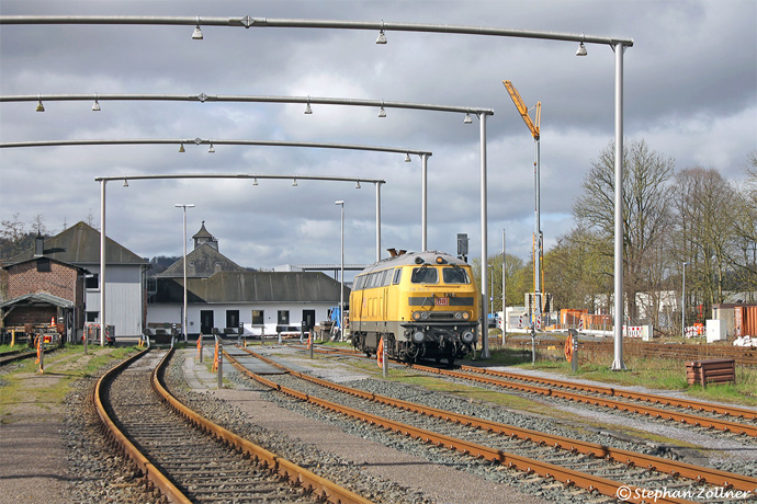 In der Wintersaison 2023 ⁄ 24 wurde die Schneepfluglok in Bestwig intensiv zur Ausbildung von Triebfahrzeugführern bei DB Netz aus allen Teilen der Republik genutzt. So auch am 25. März 2024, als die Mannschaft gerade zur Frühstückspause weggetreten war und der Fotograf so auf eine größere Wolkenlücke für eine Sonnenaufnahme in Gleis 14 warten konnte.