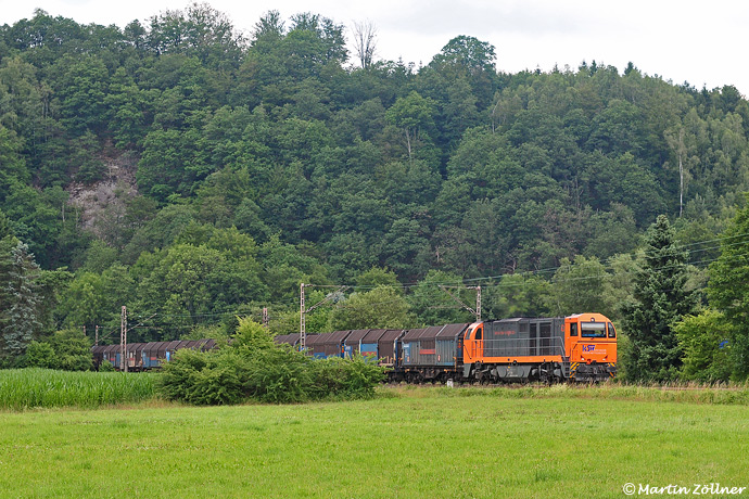 Am Nachmittag des 07. Juli 2017 ist KSW 43 damit beschäftigt, den Coilzug für das Stahlservice-Center auf dem Pfannenberg bei Plettenberg-Teindeln dem Ziel näher zu bringen. Vor der Rampe über den Roothaarkamm reicht noch eine Lok für die Traktion völlig aus.