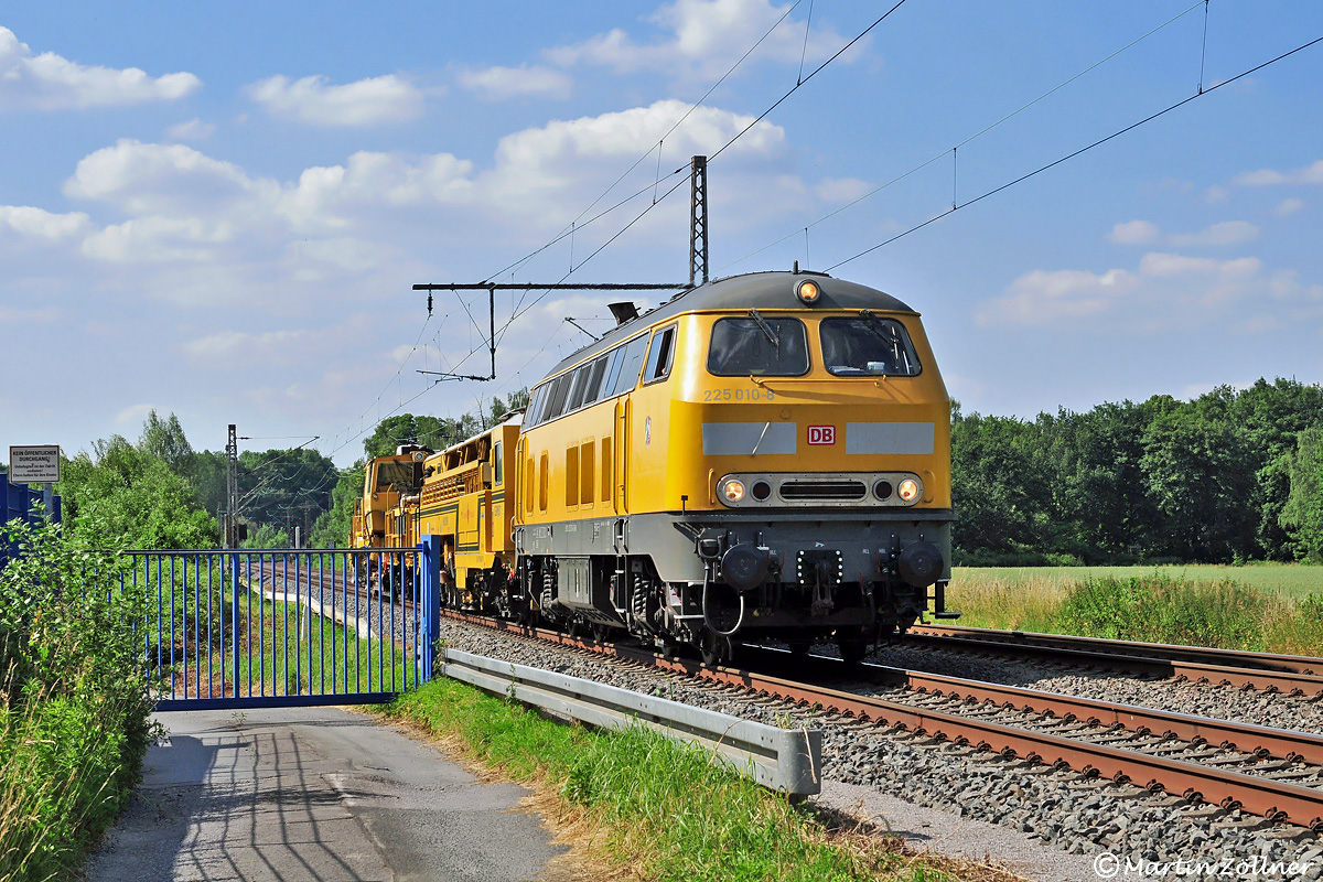 Am Nachmittag des 24. Juni 2024 wurde im Barmerfeld bei Hagen Elsey auf die neu lackierte 151 129 gewartet, welche die Übergabe aus Plettenberg nach Vorhalle bringen sollte. Überraschend zeigte sich aus der anderen Richtung plötzlich 225 010 der Bahnbau Gruppe mit einer Stopfmaschine und einem Schotterpflug, die gen Siegen vorbeidieselte.
