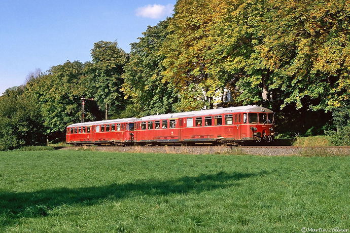 Am 01. Oktober 1988 fand eine Rundfahrt durch Bergisches- und Sauerland mit den letzten beiden roten Akkutriebwagen des Bw Mönchengladbach statt. Hierbei wurde auch die Güterzugstrecke Hemer – Sundwig befahren, die nie planmäßigen Personenverkehr aufweisen konnte. Am Hauptfotomotiv der nur 2,1 km kurzen Stichbahn sehen wird den "Steckdosenexpress" am Hemeraner Perick auf dem Weg nach Sundwig.