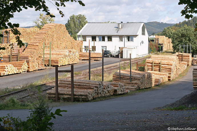 Berge im Oktober 2008: Die Umwandlung der stillgelegten Bahntrasse in einen Radweg steht kurz bevor und auch das Sägewerk hat seinen Bereich großflächig ausgedehnt. Ein Zug wird hier wohl niemals wieder zu sehen sein...