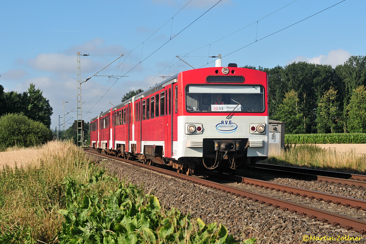 Ziemlich genau 30 Jahre später kann an selber Stelle ein zum aktuellen Datum 08. Juli 2018 auch bereits fossiles VT2E-Triebwagenpärchen (ex-AKN) im Rahmen eines Ersatzverkehrs zwischen Schwerte über Dortmund-Hörde und Hamm auf den Chip der Digitalkamera gebrannt werden. Diese dieselelektrischen VT stammen aus der ersten Bauserie mit den Baujahren 1976 ⁄ 1977. |