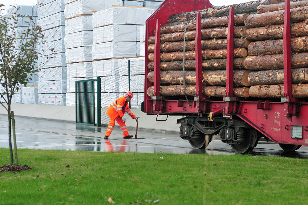 Der 12. Oktober 2012 war der erste Planeinsatztag der mit MTU-Versuchsmotor ausgerüsteten 225 008 vor dem Eggerzug im Tagesumlauf Vorhalle -(Tfzf)- Schwerte - Egger - Schwerte -(Tfzf)- Neheim-Hüsten - Schwerte -(Tfzf)- Vorhalle. Hier ist sie gerade im Eggerwerk dabei, die Wagen aus EK 54401 im Anschluß III zu verteilen. Hierzu wurden einige Weichen im Straßenplanum verlegt. Bedienung durch den Rangierer siehe Button "Info".