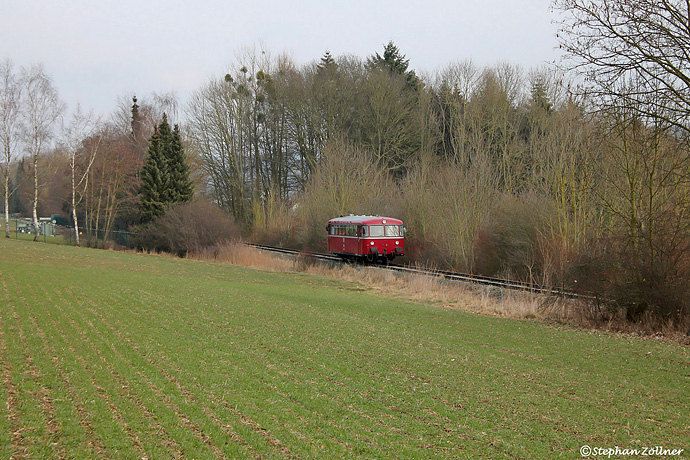 Beim Gut Holthausen konnte am 16. Februar 2017 der 798 576 als "Letzte Fahrt in Almetal" auf dem Weg vom Prellbock in Büren-Weinberg nach Ringelstein bildlich festgehalten werden. Links ist noch ein Teil des Umspannwerks Am Bühl zu erkennen, das bis Ende 2012 die Daseinsberechtigung der Pachtstrecke darstellte.