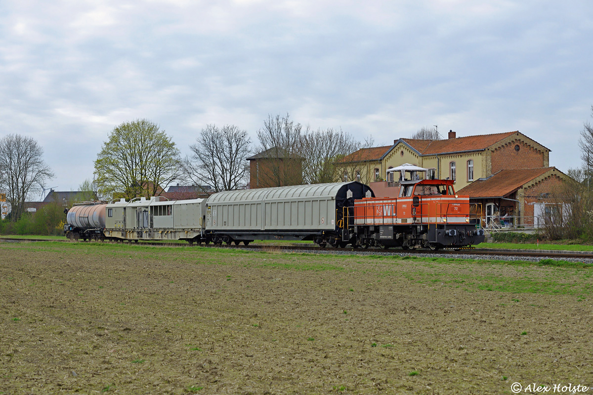 Am 21. März 2024 fanden auf der WLE Strecke zwischen Beckum und Wadersloh Messfahrten mit einem Unkrautspritzzug statt. Extra im und am Gleis platziertes Grünzeug in Umtöpfen aus einer Gärtnerei wurde dabei punktgenau chemisch "behandelt" um das Abdriftverhalten beim Spritzen im Wind zu erfassen. Die vorletzte Fahrt des Tages fotografierte Alex Holste nach der Ankunft in Wadersloh mit Zuglok WLE 72.