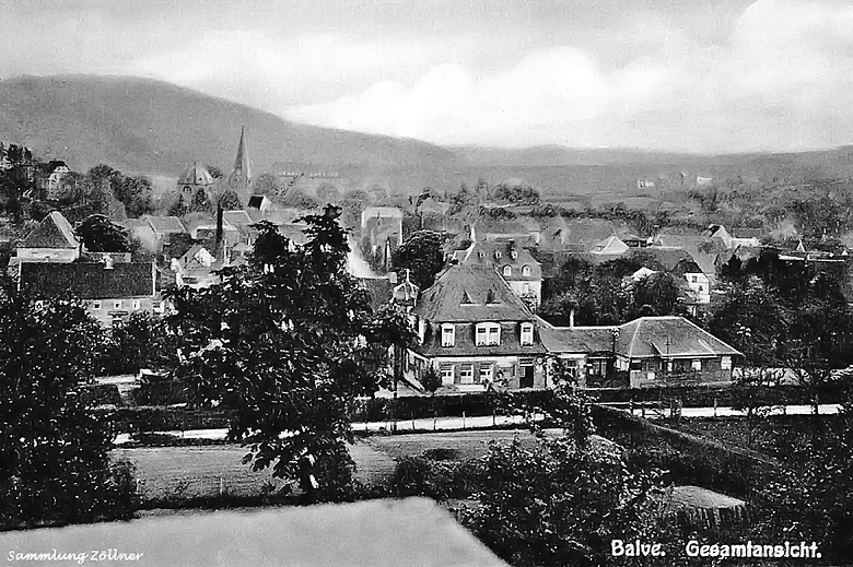 Blick auf Balve mit Bahnhof im Jahr 1932