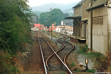 Einen guten Überblick über die Lage der Gleise im Bahnhof Balve zeigen diese beiden Aufnahmen von Michael Voigt vom September 1989, als noch alle Weichen vorhanden waren: