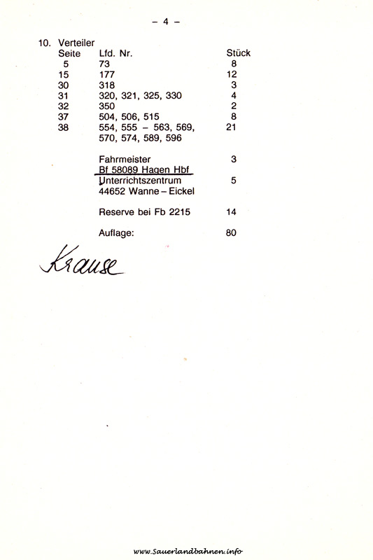 Die Sortierung erfolgt nach Jahrgängen, welche äber die Schnellfindermatrix gefunden werden können. Auch hier gilt die Genehmigung durch die DB-Regionalbahn Westfalen (Aktenzeichen PR-WF-PZTL v. 26.3.2002) zur Veröffentlichung ungültiger, dienstlicher Unterlagen.