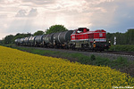 Abweichend vom Regelweg befuhr der Schwefelsäurependel von Großkorbetha zur Fa. Grillo in Duisburg-Hamborn am Abend des 30. März 2017 auf der Hintour die Obere Ruhrtalbahn. In den letzten Sonnenstrahlen des Tages konnte die bei InfraLeuna eingesetzte Dispolok-272 204 mit dem DGS 52739 bei Bentrop auf dem Chip abgelegt werden.