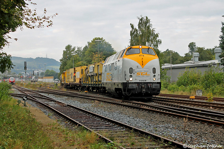 Km 228,0 Bahnhof Bestwig GbfAm Morgen des 29. September 2025 macht sich der Spülzug zur Tiefenentwässerung der Fa. Daimer aus Kirchseeon für einen neuen Einsatz bereit, hier beim Umsetzen aus der Abstellung nach Gleis 4 am Kilometerstein 228,0 im Bestwiger Gbf aufgenommen. Wegen besetztem Ausziehgleis muss SGL V 270.09 das Streckengleis in Richtung Nuttlar benutzen.