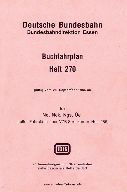 | Buchfahrplan Essen Nr. 270, Seiten 242 - 247 | gültig ab 28.09.1986 |