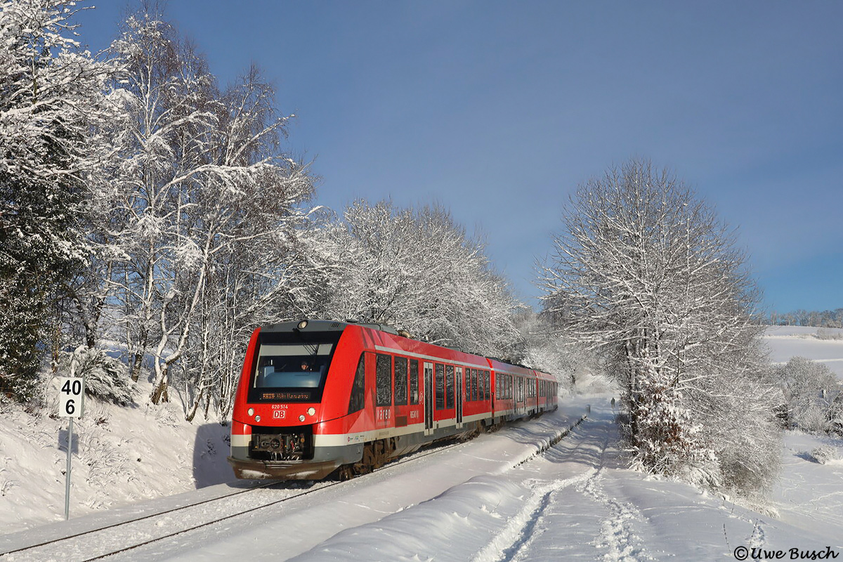 30 cm Schnee, minus 7 Grad und blauer Himmel: So muss ein richtiger Winter im Sauerland aussehen. Uwe Busch nutzte die Gelegenheit am 11. Januar 2026 und lichtete die RB 10539 aus Lüdenscheid um kurz nach Elf bei Beutringhausen auf dem Weg nach Köln-Hansaring im Winterwunderland ab.