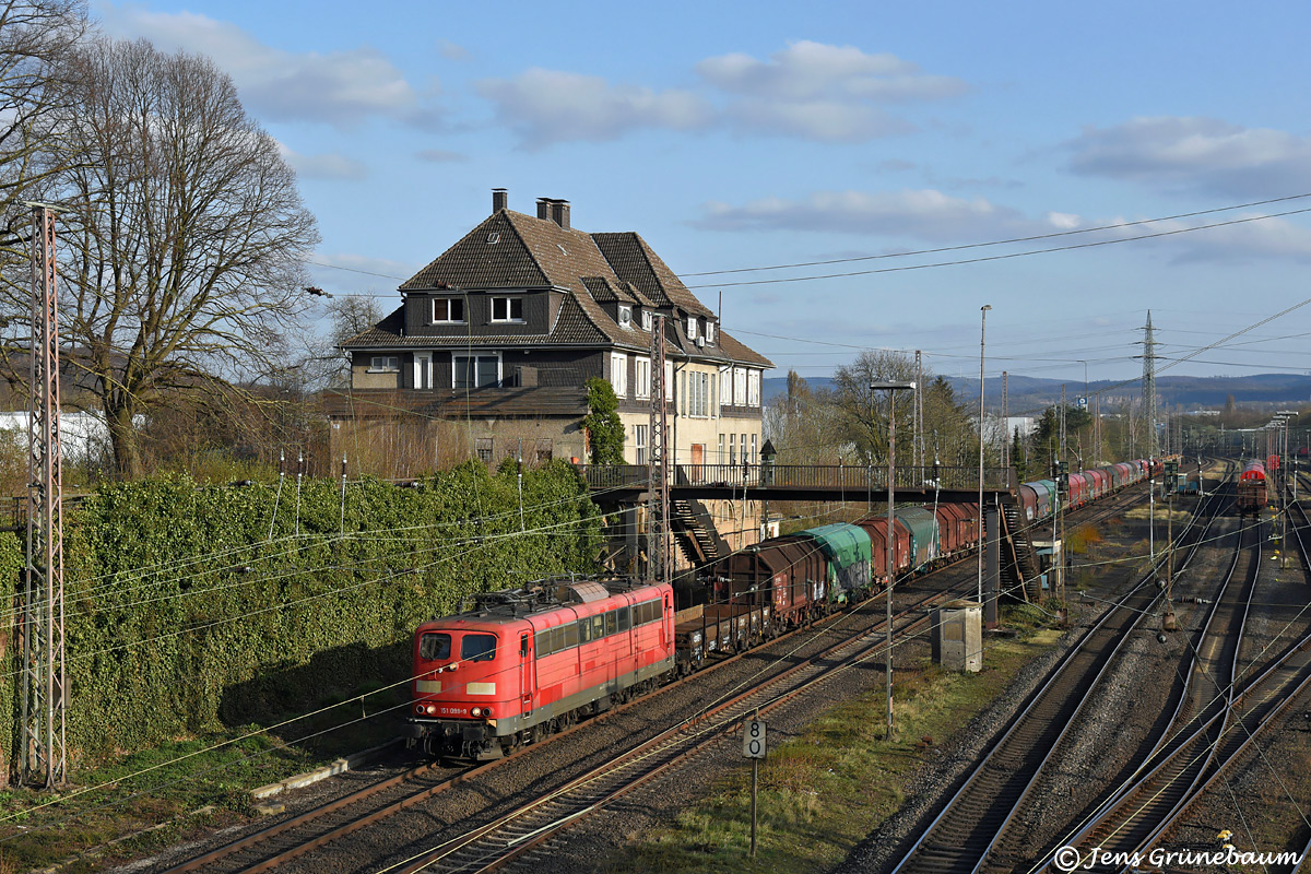 Güterzüge von der Ruhr-Siegstrecke wechseln im Bahnhof Hagen Kabel fast ausnahmslos im nördlichen Bereich am ehemaligen Personenbahnsteig auf die Strecke 2820. Am 01. April 2021 kommt dort unter dem wuchtigen Empfangsgebäude von 1922 (Abriss 49. Kalenderwoche 2021) und der Fußgängerbrücke der EZ 51341 aus Kreuztal mit Zuglok 151 099 des Weges.
