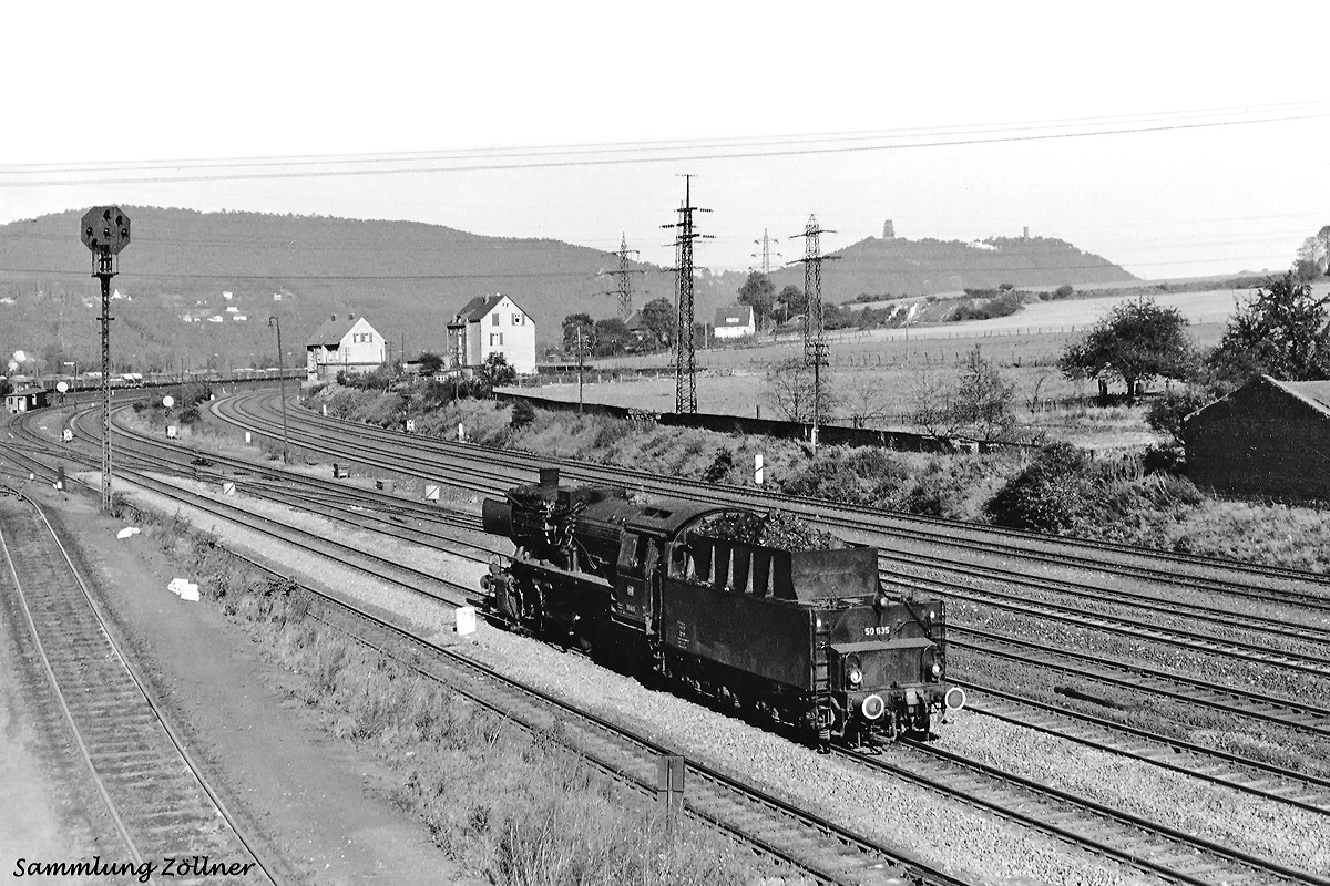 Ebenfalls 1962, eventuell sogar am gleichen Tag, wurde 50 635 vom Bw Schwerte nur aus anderem Blickwinkel aufgenommen. Lz von Vorhalle kommend (kaum erkennbar hängt die Schlussscheibe am rechten Rangiererhandgriff) geht es vermutlich zurück in die Heimat.