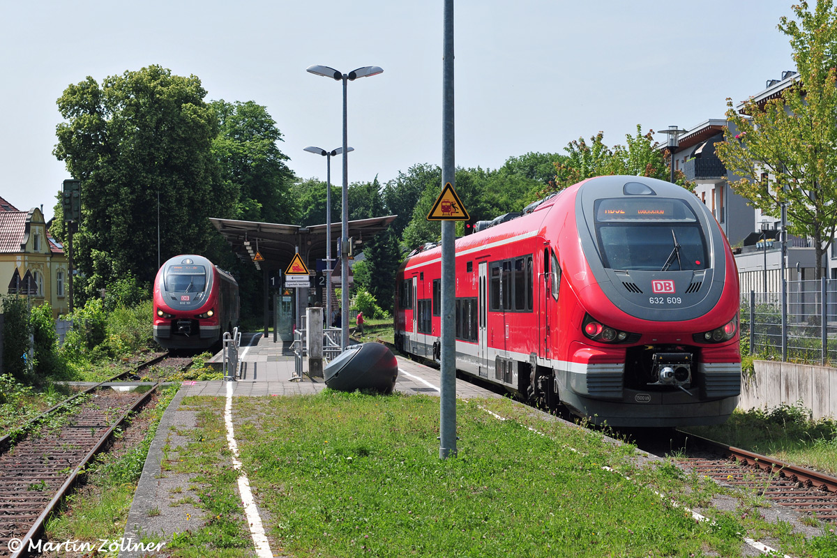 Am 13. Juni 2025 wurde einmal dem stündlichen Prozedere der Zugkreuzung im Bahnhof Herdecke im Verlauf der RB 52 beigewohnt. Links im Bild erreicht nach Einfahrt des Zuges von Hagen auch die Fahrt von Dortmund den Kreuzungsbahnhof im Verlauf der sonst nur noch eingleisigen Strecke. 632 109 ist hier auf den letzten Metern der Trasse der VzG-Strecke 2423 unterwegs.