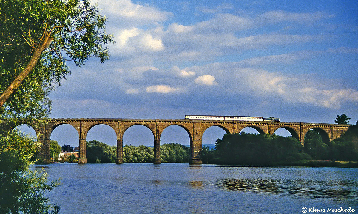 An einem wolkigen Sommerabend im Jahr 1986 stand Klaus Meschede am Ufer des Harkortsees und beobachtete die Überfahrt eines geschobenen Wendezuges in Richtung Dortmund auf dem Herdecker Viadukt mit seiner Kamera. Dabei entstand auch diese Panoramaaufnahme.