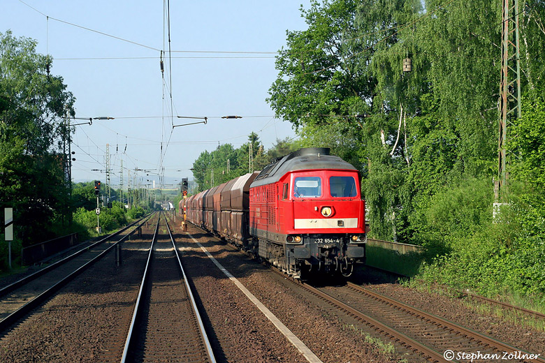 Am Morgen des 24. Mai 2010 konnte der Auslöser im Begegnungsverkehr am Schwerter Tierheim bei Westhofen betätigt werden, als 232 654 gerade noch passend aus dem Baumschatten herausgefahren kam. Am Haken der nur montags und donnerstags verkehrende CS 61390 von Oberhausen Hütte nach Horlecke, der an diesem Tag feiertagsbedingt in Schwerte zur Zwischenabstellung kam.