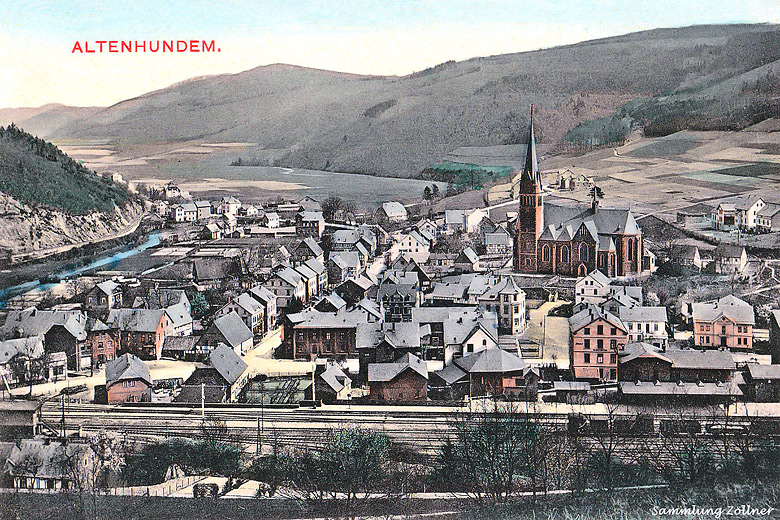 Nach Eröffnung der Ruhr-Sieg-Strecke zum 08.06.1861 im Abschnitt Altena – Siegen-Weidenau und der Linie nach Schmallenberg am 01. Juni 1887 konnte der Bahnhof Altenhundem seit 30.06.1914 auch von Birkelbach über Heinsberg mit dem Zug erreicht werden. Diese Postkartenaufnahme zeigt den Zustand um 1930.