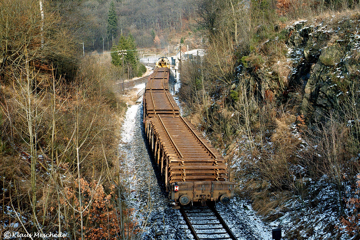 Am 05. Dezember 1992 veranstalteten die Eisenbahnfreunde Hönnetal in Kooperation mit dem Arbeitskreis Eifelbahnen wegen der bevorstehenden Einstellung des Gesamtbetriebes zwischen Frankenberg und Korbach eine Sonderfahrt mit Schienenbus im Ederbergland. Auf der ebenfalls bereisten Strecke nach Hatzfeld wurde am sonst eher schlecht zugänglichen Südwestportal des Dodenauer Tunnels ein Fotohalt eingelegt. Bei herrlichem Sonnenschein belichtete auch Klaus Meschede ein paar Dias von der Aktion.