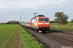 Km 120,1 Klotingen-Erley, Hohe BrückeFür den 02. Dezember 2023 hatte der Verein Baureihe E10 e.V. zu einer Sonderfahrt im Bundesbahn-InterCity der 80er Jahre zum Weihnachtsmarkt nach Erfurt eingeladen. Der F 336 "Erfurter Schittchen" fuhr ab Remagen über Köln durchs Ruhrgebiet und dann ab Bochum mit dem wegen Bauarbeiten auf der Hellwegstrecke ungewöhnlichen Laufweg über Witten, Schwerte, Abzweig Autobahn, Hamm Rbf, Abzweig Gallberg und Soest – Altenbeken – Kassel – Bebra zum Ziel. Mit etwas Sparsonne konnte 103 245 vom DB-Museum als Zuglok um kurz nach halb Zehn von der Hohen Brücke bei Klotingen-Erley fotografisch erlegt werden.