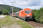 Km 52,4 EimelrodAnlässlich des FIS-Skisprungweltcups in Willingen setzte die Kurhessenbahn auch 2011 wieder Verstärkerzüge zwischen Korbach und Brilon Wald ein. Hierbei kam die altrot lackierte, kurhessenbahneigene 218 387 mitsamt einem von der Südostbayernbahn angemieteten n-Wagen-Wendezug zum Einsatz. Bei der nachmittäglichen Pendelfahrt konnte die RB 23254 am 29. Januar bei Eimelrod bildlich festgehalten werden.