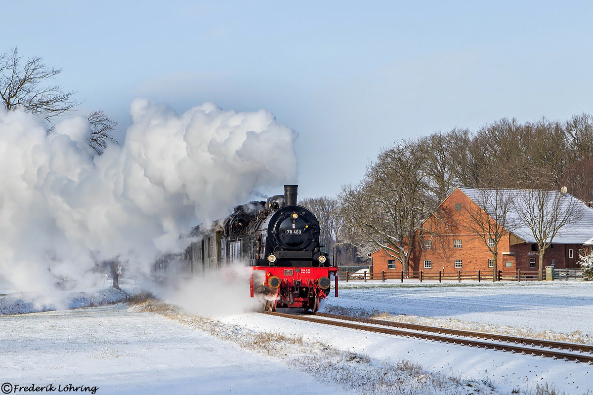Unter dem Motto "Winterdampf nach Warstein im Hochsauerland ⁄ Mit Volldampf über den Westfälischen Semmering" veranstaltete der Verein Eisenbahn-Tradition e.V. am 10. Januar 2026 eine Sonderfahrt mit der 78 468 von Lengerich über Münster, Hamm, Neubeckum und Lippstadt in die Bierstadt. Auch Frederik Löhring begleitete die Tour bei bestem Winterwetter mit etwas Schnee und fertigte unter anderem an der Suderlager Straße bei Cappel diese Aufnahme an.