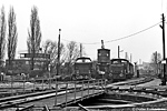Km 0,6 Bw Lippstadt, Lokschuppen Stirper StraßeDas Bahnbetriebswerk der WLE in Lippstadt mit Ringlokschuppen und Drehscheibe befindet sich in der Stirper Straße. Hier konnte und kann man immer noch den vielfältigen Fahrzeugpark in Augenschein nehmen. Auf dem Bild unten links stehen WLE VL 0611 und VL 0609 am 14.08.1976 neben dem Rundschuppen. Rechts sind MaK-Leihlok 400058 und WLE VL 0608 am 11. Januar 1973 am alten Kohlenkran zu sehen.